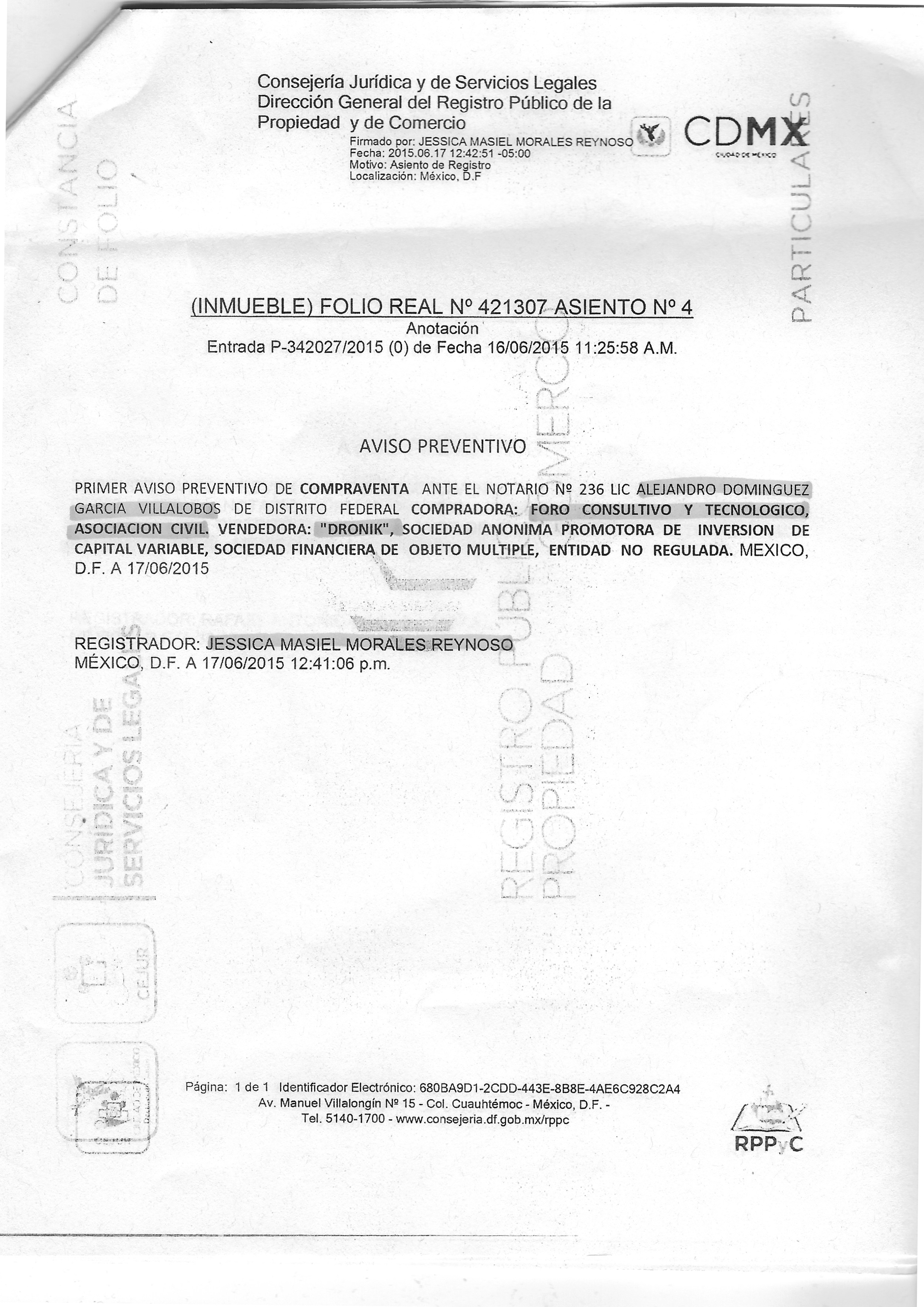 29 de julio de 2019-Tras 13 años de operaciones opacas, el Foro Consultivo Científico y Tecnológico, A.C. adquirió una casa ubicada en el domicilio Melchor Ocampo, Casa #305 (antes 107), de la alcaldía Coyoacán en la Ciudad de México. Los fondos con los que adquirieron el inmueble jamás fueron revelados, incluso la fuente de donde obtenían recursos (Fondo F002 y FONIS) no permite que sean utilizados con ese objetivo. La A.C. no posee expedientes de ingresos extras a los recibidos por Conacyt.