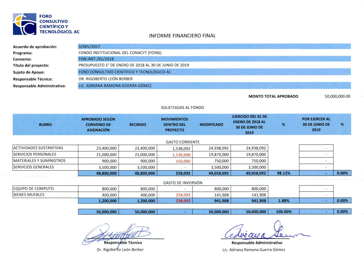 27 de septiembre de 2002-En vez de crear un Órgano Autónomo Interno en forma de fideicomiso, Patricia Zúñiga Cendejas como Secretaria Técnica del Foro Consultivo y José Antonio de la Peña Mena, futuro Coordinador General, crearon el Foro Consultivo Científico y Tecnológico, Asociación Civil (A.C.) con el que duplicarían funciones del estado y se verían beneficiados de fondos públicos.